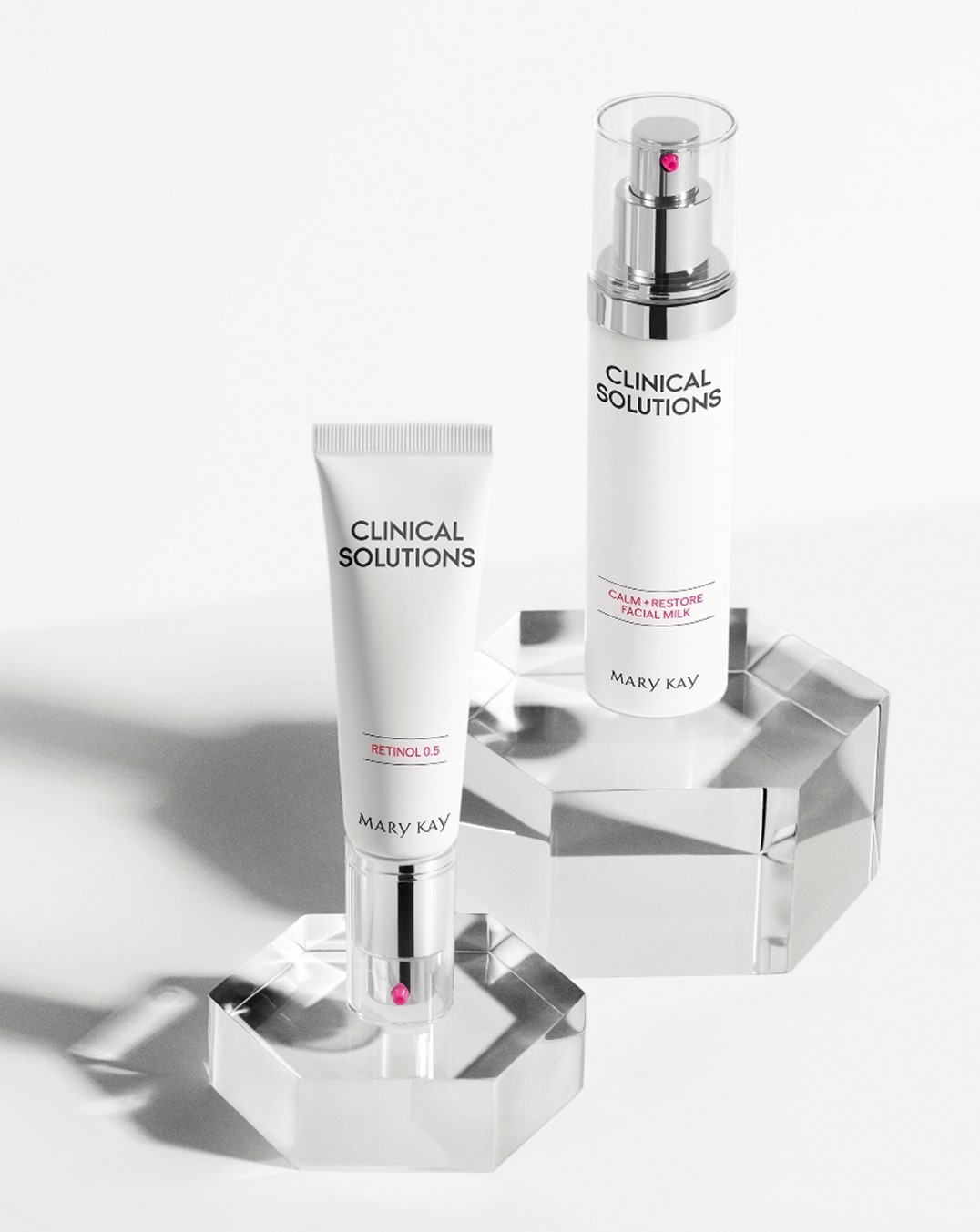 Introduce un nuevo nivel en tu rutina de noche del cuidado de la piel. El sistema incluye el Retinol 0,5 y la Leche Facial Calmante + Restauradora Mary Kay Clinical Solutions™. Estos productos están diseñados para utilizarse conjuntamente como parte del protocolo de retinización desarollado por Mary Kay.